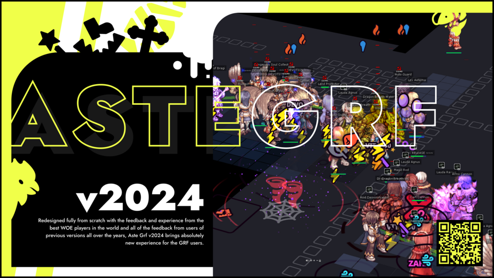 Redesigned fully from scratch with the feedback and experience from the best WOE players in the world, Aste Grf v2024 brings absolutely new experience for the Ragnarok Online players and GRF users.